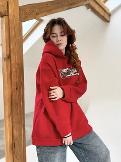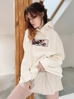 Худи оверсайз утепленный с принтом аниме