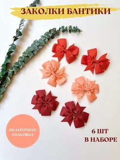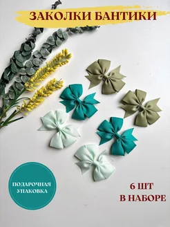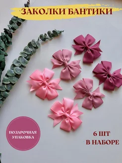 Заколки бантики для девочек, набор 6 шт