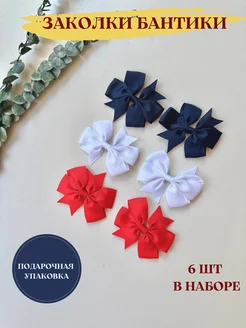 Заколки бантики, комплект 6 штук