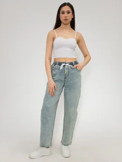 Джинсы багги с высокой посадкой на резинке
