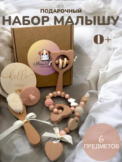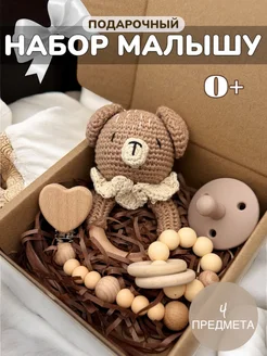 Подарок набор новорождённому 4 предмета коричневый, 0+