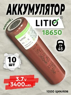 Аккумулятор 18650 литий-ионный Li-ion 3,7v, 3400 mAh, 10 шт