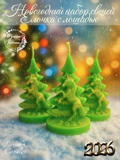 Свеча Новогодняя "Елка с лошадью" набор из трех штук