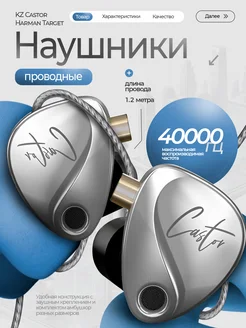 Наушники KZ Castor Harman Target, без микрофона, серебро