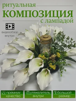 Ритуальная композиция на кладбище с лампадой и ангелом