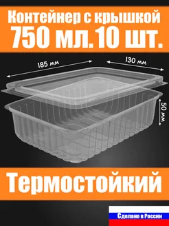 Контейнер одноразовый с крышкой, 750 мл, 10 шт