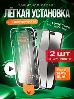 Защитное стекло iPhone 16 15 14 Pro с автоустановкой 2шт