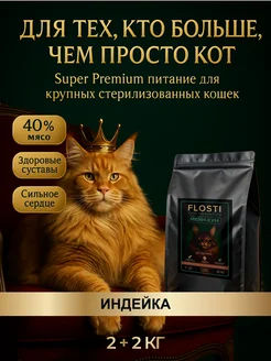 Сухой корм для крупных стерилизованных кошек, индейка 4 кг