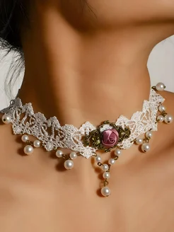 Готический чокер на шею кружевной с жемчугом Lacy 37 см