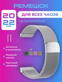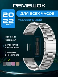 Металлический ремешок для часов 20 22 мм блочный стальной