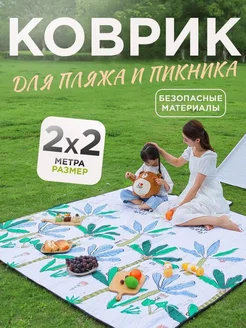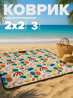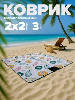 Коврик для пляжа и пикника складной мягкий 200х200 пальмы