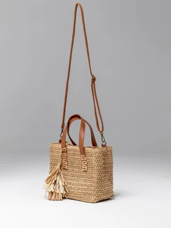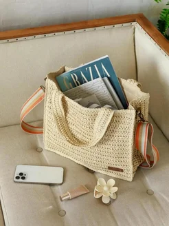 Сумка соломенная на молнии с двумя ручками и ремнем