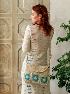Сумка соломенная пельмень с фермуаром и жемчугом