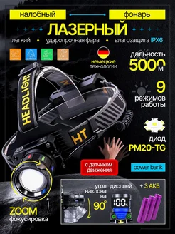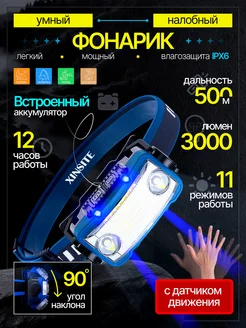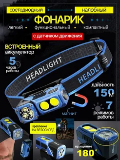 Налобный фонарь аккумуляторный с зарядкой датчиком движения