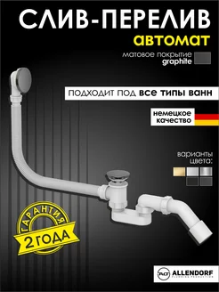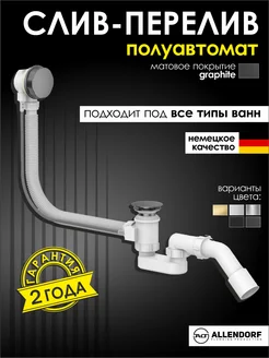 Сифон для ванны полуавтомат слив-перелив графит