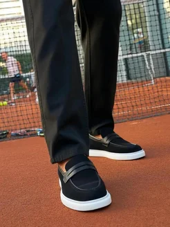 Лоферы замшевые на белой подошве