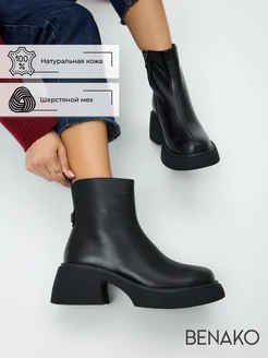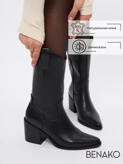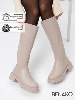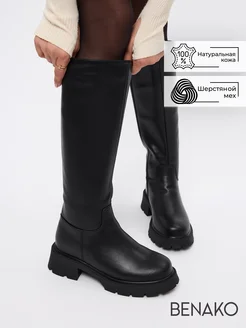 Высокие зимние сапоги из натуральной кожи на каблуке