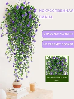 Лиана искусственная для декора фиолетовые цветочки 3 шт