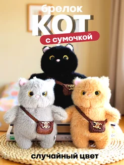 Брелок для ключей плюшевый мягкий котик с сумочкой