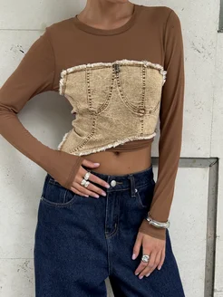 Облегающий лонгслив сетка с длинными рукавами