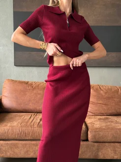Женский трикотажный костюм с юбкой