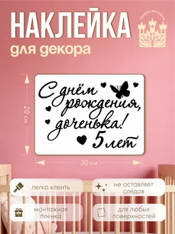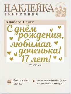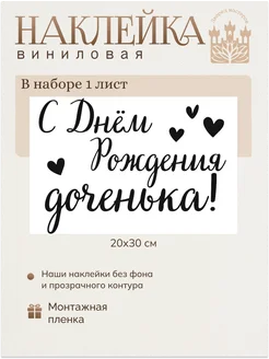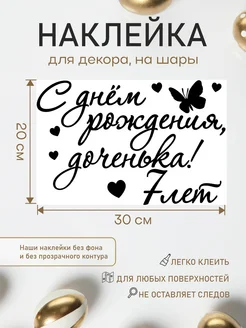 Наклейка на коробку шары конверт с днем рождения, доченька