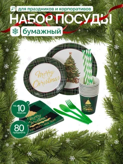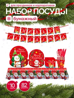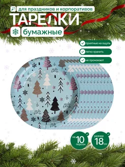 Набор новогодних бумажных одноразовых тарелок 10 штук 18 см