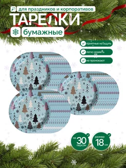 Набор Новогодний бумажных одноразовых тарелок 30 штук 18 см
