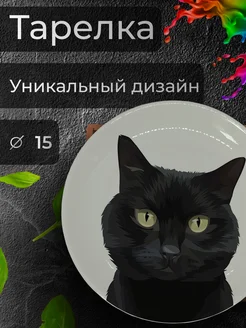Тарелка с принтом "Чёрный кот", Ø 15 см