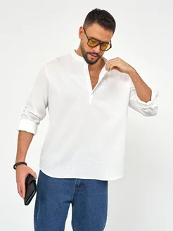 Рубашка летняя из льна с длинными рукавами