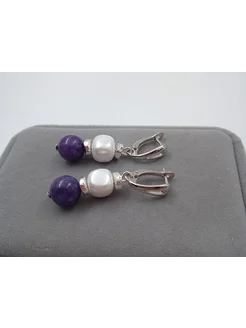 Серьги 4.5см барочный жемчуг майорка лиловый