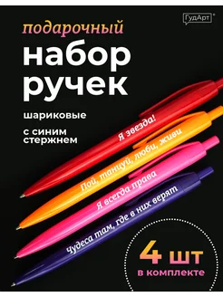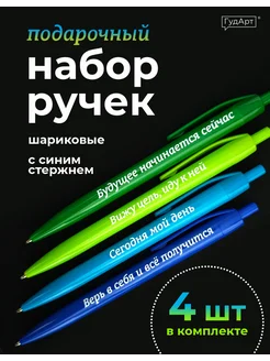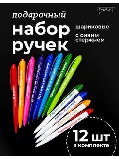 Ручки шариковые с надписями подарочный набор - 12 штук