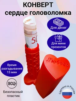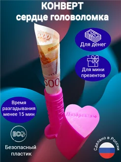 Подарочная коробка-головоломка, конверт для денег "Сердце"
