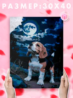 Картина по номерам на холсте 30 x 40 щенок Бигль