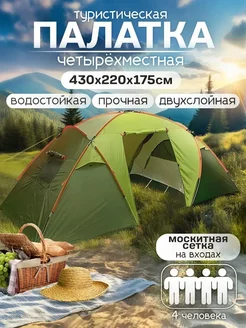 Палатка 4 местная двухслойная с тамбуром и навесом