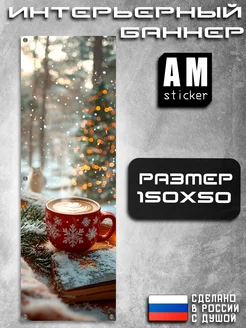 Постер на стену баннер С новым годом 50х150 2026 Чашка кофе