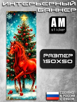 Постер на стену баннер С новым годом 50х150 2026 Лошадь