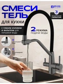 Смеситель для ванны в раковину нержавейка BRASS, серый