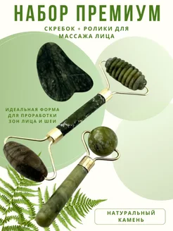 Массажный набор скребок Гуаша и ролик для массажа лица