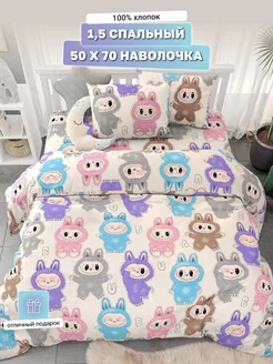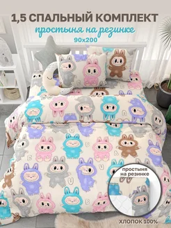 Постельное белье 1.5 спальное на резинке 90х200 Лабубу