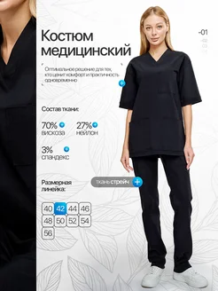 Медицинский костюм вискоза с брюками на резинке стрейч