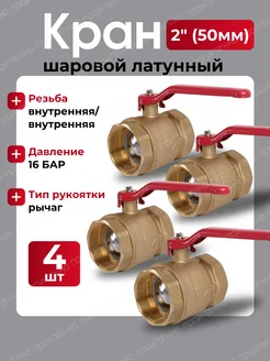 Кран шаровой для воды Ру16 Ду50 вн вн рычаг 4 шт