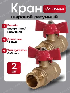 Кран шаровой для воды Ру16 Ду15 вн нар бабочка 2 шт