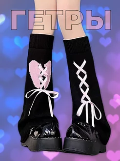 Гетры вязаные c сердцем шнуровка y2k