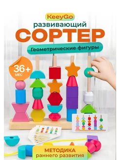 Сортер монтессори деревянный по цветам геометрические фигуры