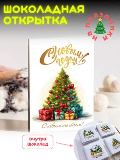Открытка с новым годом с шоколадом подарочная
