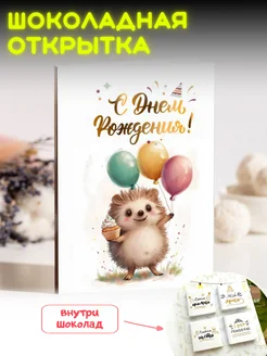 Открытка «Ежик с днем рождения» с шоколадом