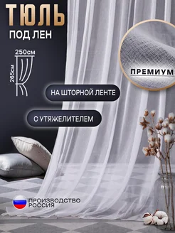 Тюль под лен в спальню 250х265 см белая