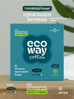Ночные прокладки из органик-хлопка с крылышками Ecoway (4к)