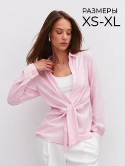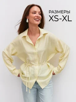 Рубашка офисная свободная льняная с завязками